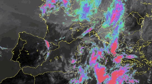 La massa d'aria calda sta risalendo da Sud, dal Canale di Sicilia, dove violenti temporali in mattinata hanno già colpito sia Malta che le isole minori siciliane (34mm a Linosa, 12mm a Pantelleria). Un enorme sistema temporalesco sta risalendo verso la Sicilia sud/orientale e jonica, e nel pomeriggio si estenderà anche alla Calabria. Previste piogge torrenziali a partire da questa sera sulle zone ioniche.