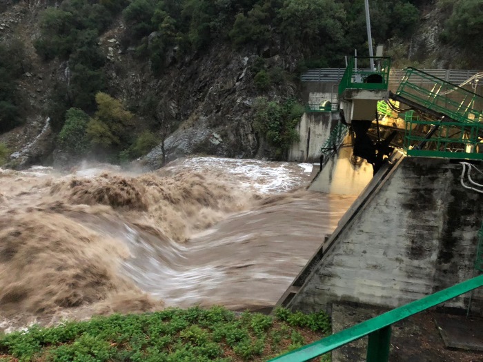 La diga che serve le centrali idroelettriche di Cotronei ha raggiunto il suo massimo di portata e tonnellate d'acqua si stanno scaricando nel corso del fiume Neto, già ingrossato per le incessanti piogge odierne.
