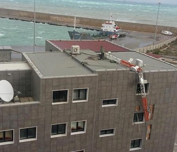 A causa delle forti raffiche di vento che si stanno abbattendo con particolare intensità nella zona dalla notte scorsa a Crotone è caduto il traliccio dell'antenna radio posta sull'edificio che ospita la Capitaneria di porto.