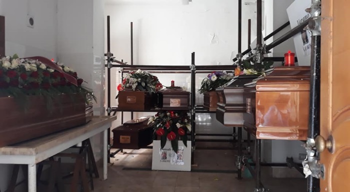Sui social monta lo sdegno dei cittadini di Crotone per una foto che ritrae bare ammassate in attesa che si liberi un loculo in cimitero.
