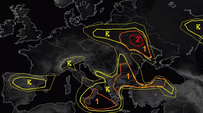 Ed Estofex (European Storm Forecast Experiment) ha lanciato un’allerta proprio per le regioni meridionali dell’Italia. Livello di allerta 1 per la Sicilia, il Sud Italia e le aree circostanti principalmente per forti raffiche di vento, isolata grandine di grandi dimensioni e rischio tornado. Tutte le allerte si intendono formalmente valide fino alle 8 (ora italiana) di venerdì 17 maggio.
