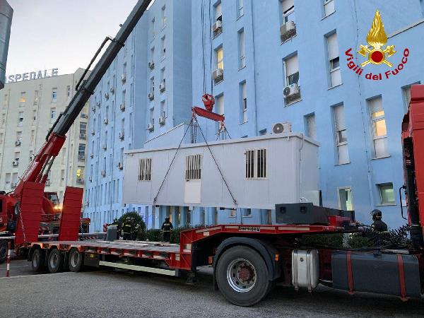 Tutta l’operazione è stata seguita con attenzione dal Direttore Sanitario Dott. D’angelo, che ha poi dato disposizione per l’ubicazione in uno spazio di fianco al pronto soccorso, dove i Vigili del Fuoco di Crotone con una delicata operazione, visto il poco spazio a disposizione, hanno sistemato la struttura, il delicato posizionamento si è protratto fino a sera.