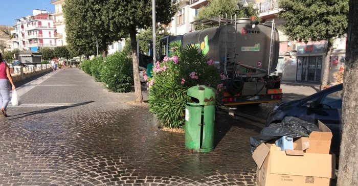 Intanto gli operatori di Akrea stanno provvedendo al lavaggio dei cestini e dei cassonetti presenti lungo le vie, al fine di ripristinare le normali condizioni igieniche ed eliminare le emissioni di odori nauseabondi, ancora più intensi con la stagione calda.