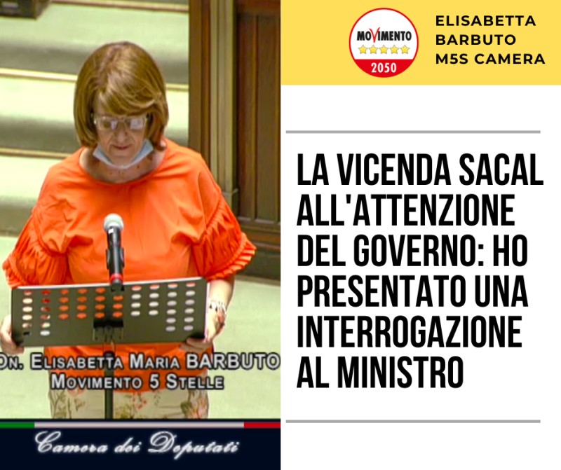 La deputata Elisabetta Barbuto comunica di avere presentato alla Camera, condividendola con tutti i membri della deputazione M5S, una interrogazione sulla vicenda SACAL intorno alla quale, in questi giorni, si sta scatenando una vera e propria bufera mediatica.