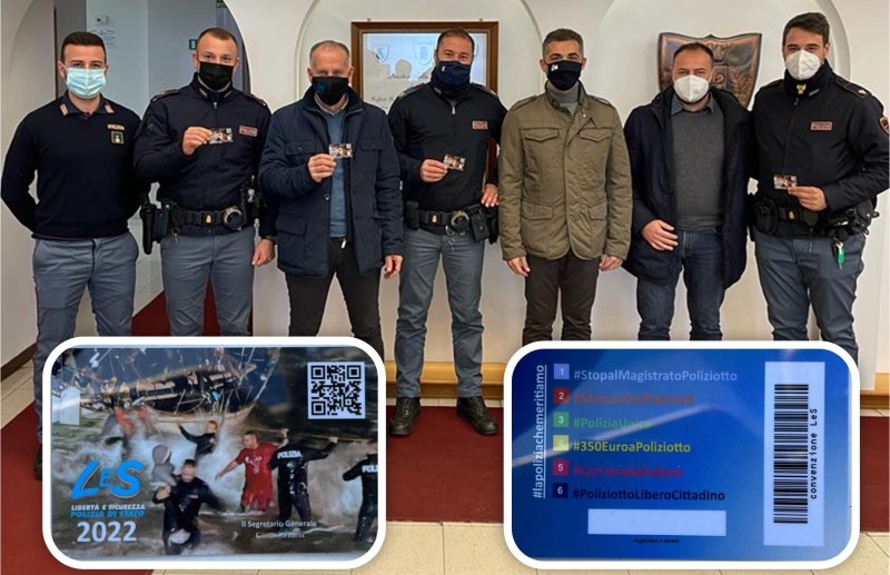 Il segretario generale Giovanni Iacoi ha così commentato l’iniziativa: “la segreteria nazionale ha inteso omaggiare l’operato di tutti i poliziotti con questo gesto eroico e pieno di umanità, facendo stampare le tessere d’adesione alla nostra organizzazione sindacale per l’anno 2022 con questa immagine.” L’incontro si concludeva con i consueti auguri per le imminenti festività ed omaggiando tutti i colleghi che hanno partecipato al salvataggio con la nuova tessera LeS.