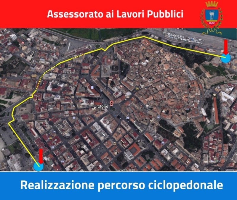 Sono prossimi alla partenza i lavori per la realizzazione di una pista ciclopedonale in centro città. Lo comunica l’assessore ai Lavori Pubblici Ing. Ugo Carvelli. L'intervento che si snoda su una lunghezza complessiva di circa 1,5 km, ha come finalità la messa a sistema e ricucitura dei percorsi ciclabili e ciclopedonali esistenti, il collegamento con il centro della città, la fermata degli autobus urbani, il porto ed il lungomare cittadino e per dare risposta alla crescente domanda di mobilità alternativa, pedonale e ciclabile in costante aumento negli ultimi anni.