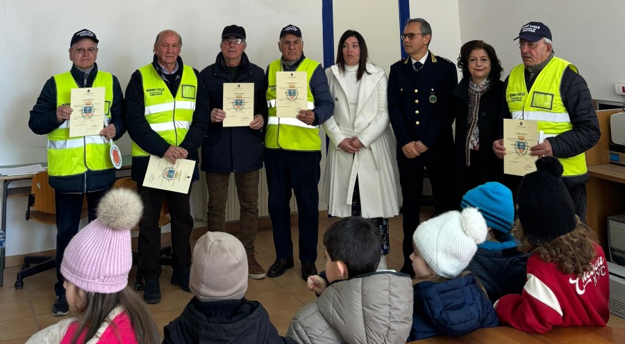 L’assessore ha anche ringraziato i “nonni vigili” per la preziosa collaborazione consegnando una pergamena con la quale il sindaco Voce ha voluto attestare la riconoscenza dell’amministrazione per il prezioso contributo offerto al servizio della comunità cittadina.