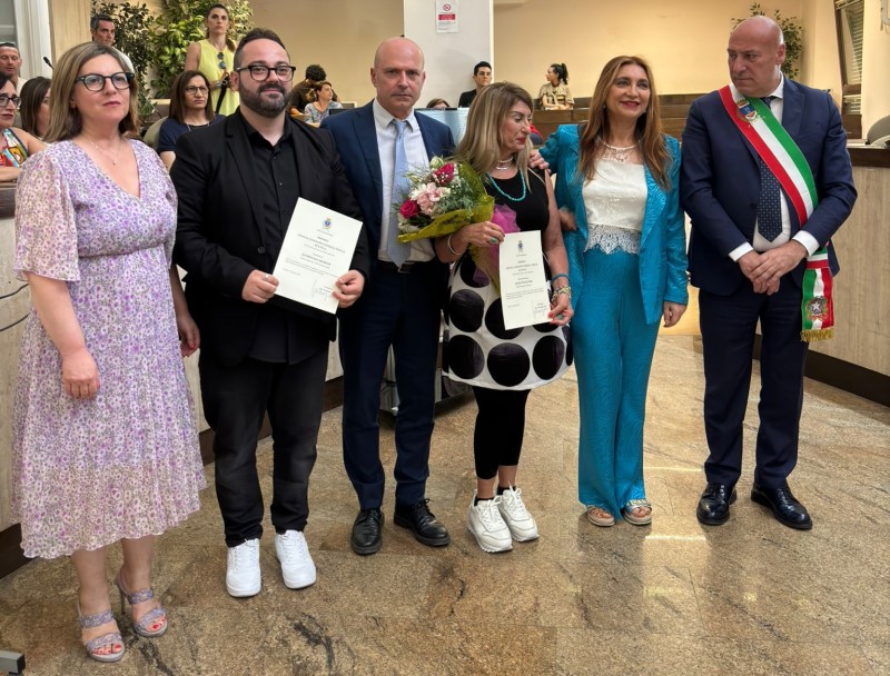L’onorificenza è stata concessa alla prof. Luisa Floccari dell’Istituto Comprensivo “Rosmini” e al prof. Damiano Morise dell’Istituto Comprensivo “Maria Grazia Cutuli”. A consegnare la pergamena ai professori con le motivazioni del riconoscimento il sindaco Vincenzo Voce.
