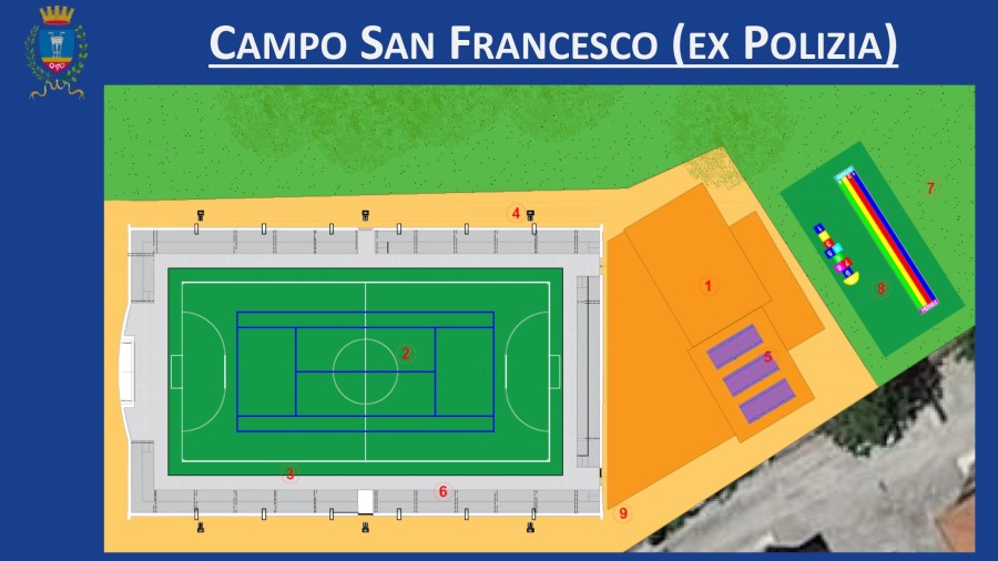 Quartiere nel quale saranno effettuati tre interventi per renderle funzionali e metterle a disposizione della comunità residente. Si parte con il campo (ex polizia) del quartiere S. Francesco, il primo cantiere aperto questa mattina dove sarà rifatto il manto in erba, ristrutturato lo spogliatoio, ripristinate rivestite le gradinate, realizzata una recinzione oltre alla realizzazione di una area ludico – ricreativa in erba sintetica.